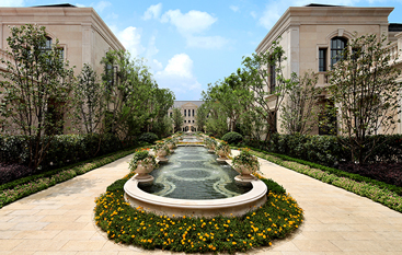 法式建筑外形豐富而獨特,建筑形體厚重雄偉,多采用對稱造型,善于在細節雕琢上下工夫。法式建筑屋頂多采用四坡屋頂并開有精致的老虎窗,外立面運用了法式廊柱、雕花、凹凸有致的線條,顏色穩重大氣。